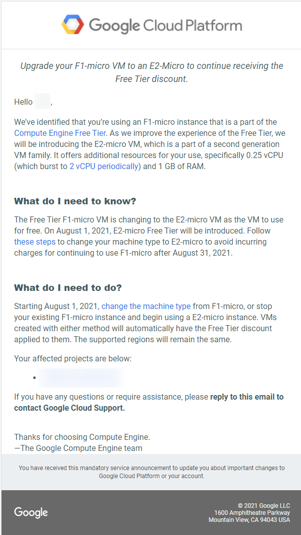 8월 1일부터 적용되며, 9월 1일까지는 가상 머신 유형을 e2-micro로 업그레이드 해야 합니다.
