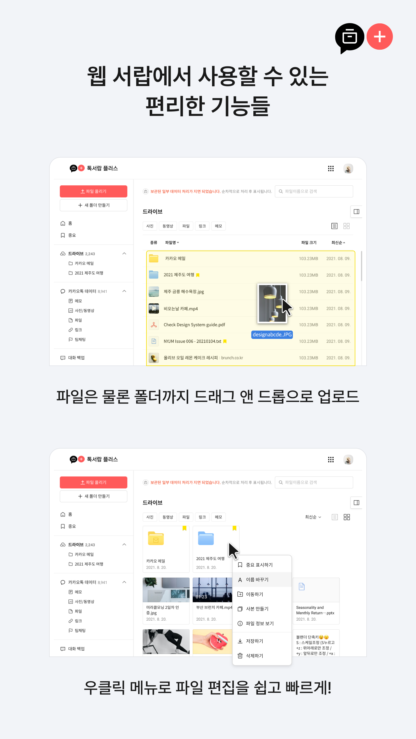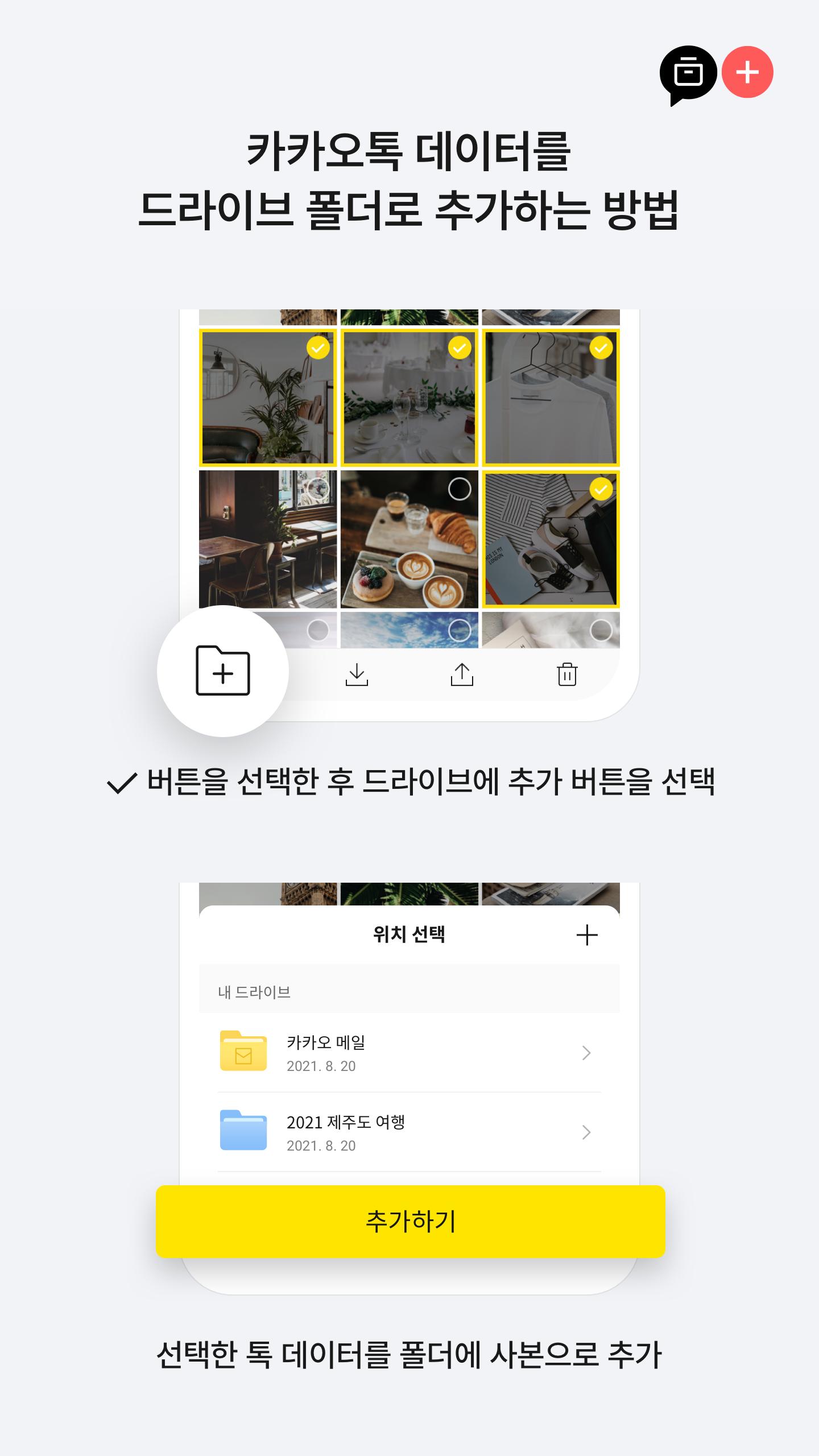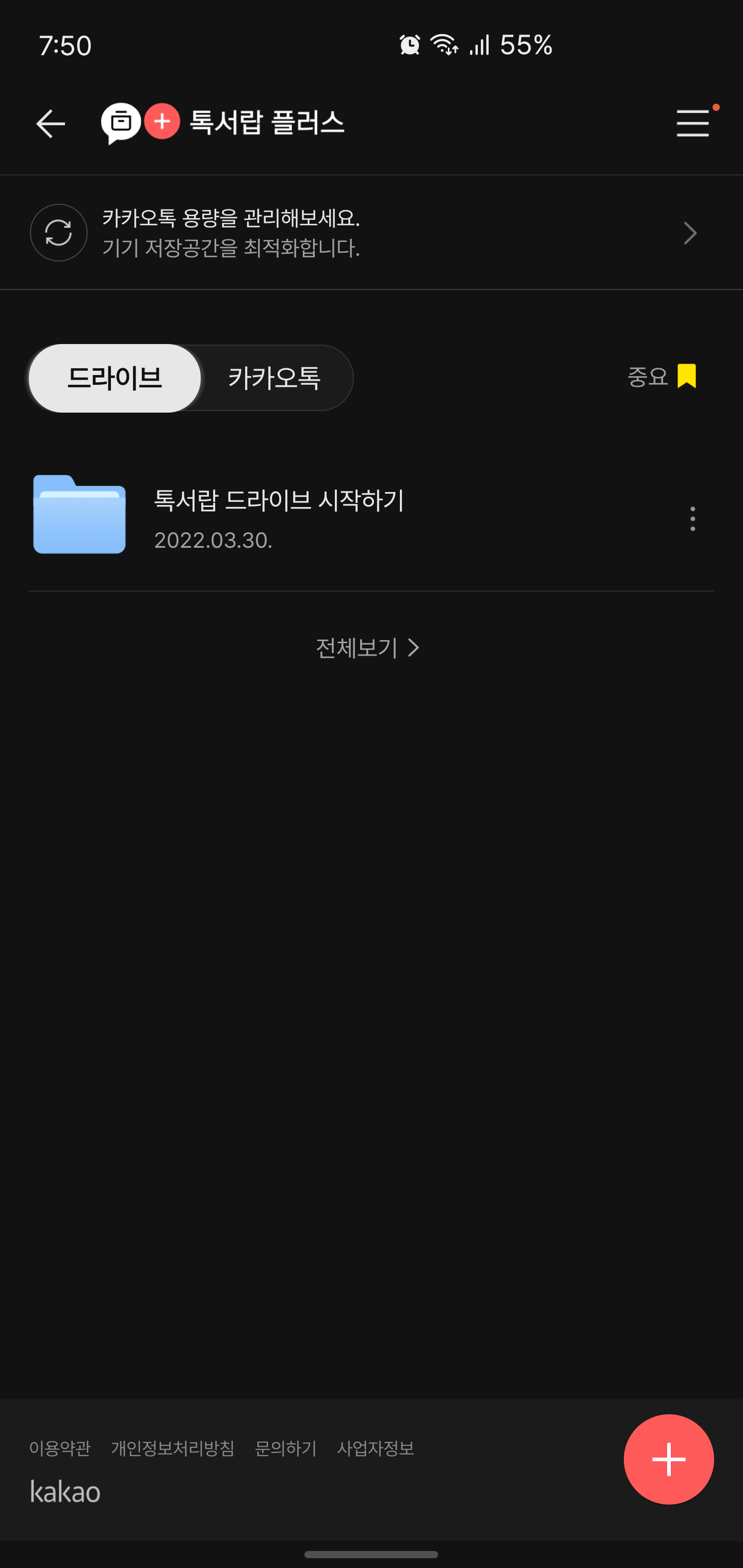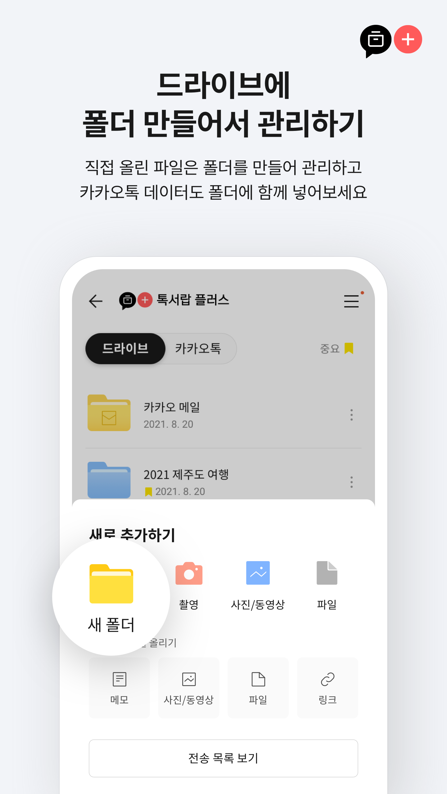 카카오톡 톡서랍을 이제 드라이브로 이용 가능합니다.
