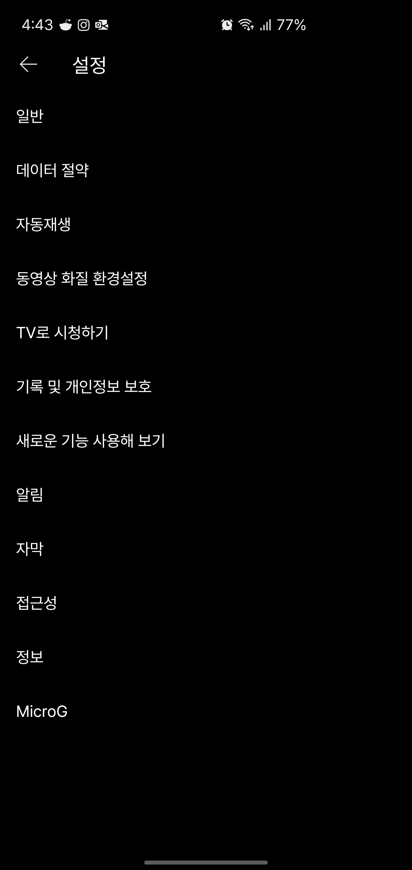 기존의 Vanced와는 달리 ReVanced만의 설정은 따로 없습니다.